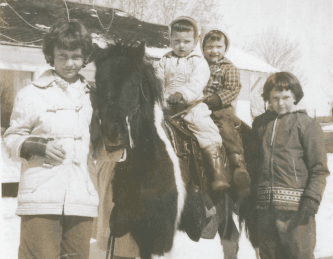 Patches. That’s what we named the brown-and-white Shetland pony Dad brought home from the carnival. Not that he worked at the carnival. He was a welder who went out to fix the axis in the ride-a-pony tent. The carnival people couldn’t pay Dad so he, remembering the horse pictures on my bedroom walls, took the pony and a tiny black saddle in payment. He set her up in our fenced back yard.