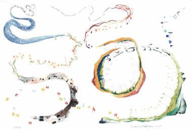 Valerie Atkisson, Notation in Time, gouache and computer art, 2004.