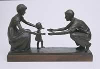 This is one of thirteen works of sculpture commissioned by the Relief Society of the Church of Jesus Christ of Latter-day Saints for the relief society sculpture Garden at the visitors’ center in Nauvoo Illinois. These works, all larger than life size, depict women and portray positive values such as charity, industry, and parenthood. Dennis Smith created eleven of the thirteen Florence Hansen the other two. This bronze was created from the small maquette done in preparation for the large garden sculpture.