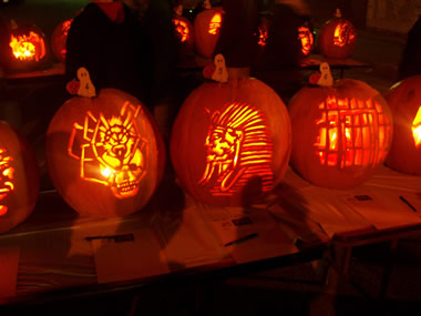 On October 25, Nauvoo’s “Pumpkin Walk” began with free Halloween movies for children. Approximately 400 brightly lit and intricately carved jack-o’-lanterns were placed along three blocks of Mullholland Street , and stores stayed open late.