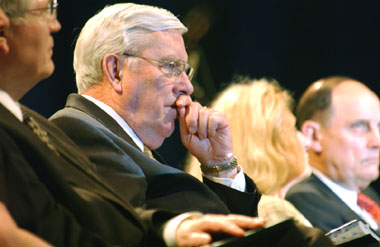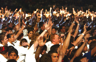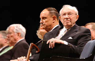 I have prepared 48 pictures for you to look at. Maybe you’ll see somebody you know. Please take the time to “click to enlarge” the pictures so you can enjoy them more fully. There are subtle things in many of them. I’ve divided the essay into five basic parts: 1) The member meeting on Saturday night; 2) The youth coming to the temple; 3) Adults and families; 4) President Hinckley with the children; and 5) A variety of individuals and families.