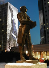 Huge sports mural adorns a tall building behind this statue of Joseph Smith. Though the Church will not proselytize Olympic Visitors, the world-wide attention we will receive would surely please Brother Joseph.