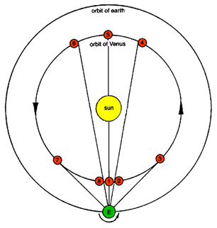 8. The period of Venus is only about 225 days relative to the stars. That is called the sidereal period and is the one listed in most planetary tables. But the cycle of the evening and morning star derive from the phases of Venus as seen relative to the sun, and it requires an average of 583.92166 days, the “synodic period,” for its completion.