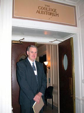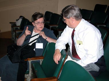 Noel B. Reynolds, professor of political science at BYU and session moderator, with John W. Welch.