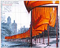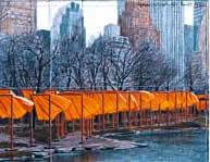 The orange sentinels were part of “The Gates,” a new public art fest set up by Christo and his wife Jeanne-Claude. Christo is the artist who wrapped the islands near Miami in pink fabric in 1983 and ran a 24.5-mile white nylon fence in the hills near San Francisco. The pair negotiated for 26 years with New York City officials to install 7,500 steel gates, each 16 feet tall. Dangling from each gate is a lengthy square orange fabric panel.