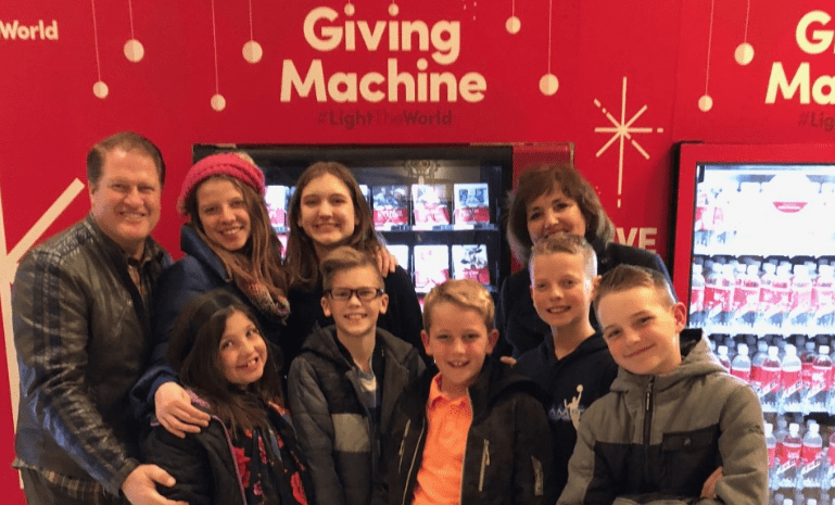 We saw the play together and then with that context, we headed with the grandchildren to the Joseph Smith Memorial Building to the #LighttheWorld giving machines and told them that this year instead of giving them a present, we were going to help them give a present to someone else. We shivered through the cold air as we walked from the parking lot, laughing, talking, singing and dancing, sometimes forming poses for the camera. Everyone was high at the thought of giving something significant to somebody who really needed it.