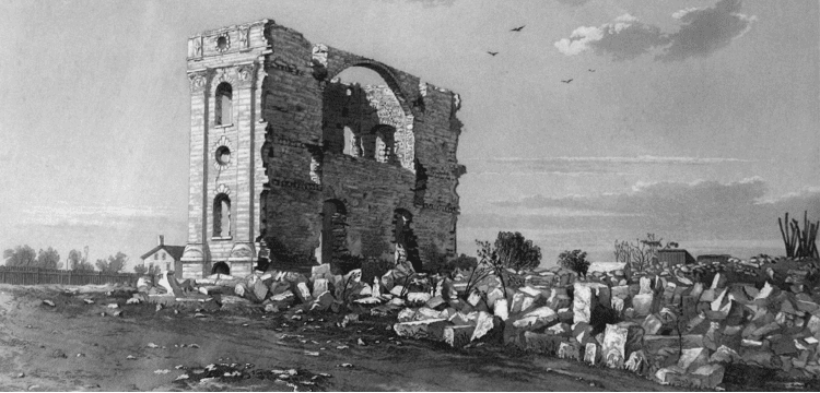 Frederick Hawkins Piercy (1830–1891): Ruins of the Temple at Nauvoo, 1853.[26]