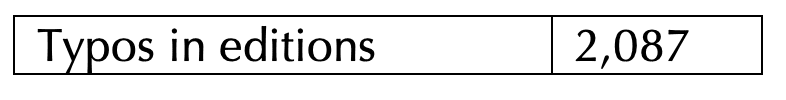 - “Many other spelling errors appear to have been strictly typographical for example,aaswer, amog, bacause, daghter, mnltitude, theit, and