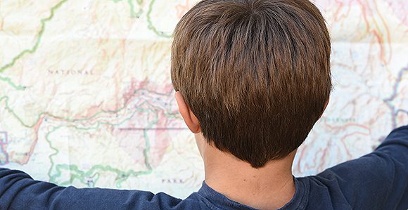 Now, when the children want to know how much longer the journey will be he hands them the map he has prepared in advance so they can see how far they have come and how much farther they need to go.
