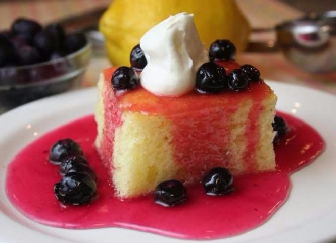 Vanilla Bean Cake with a Blueberry Lemon Sauce (pictured above)