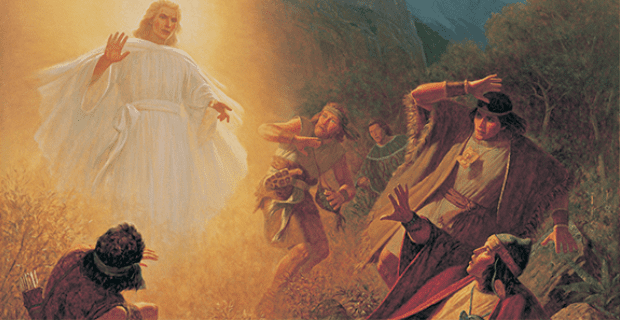 While he and the sons of Mosiah were going about seeking to destroy the Church, an angel of the Lord appeared to them, causing them to fall down in astonishment.