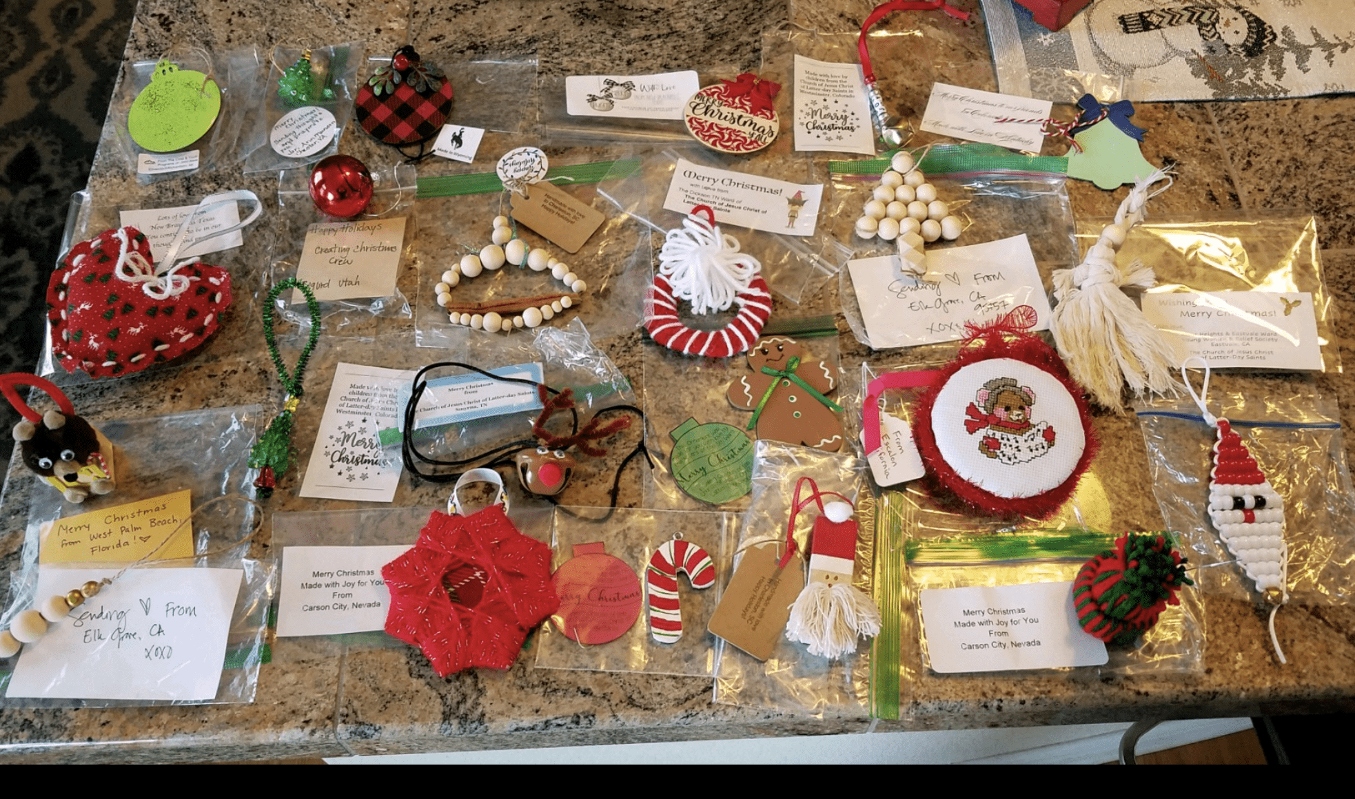 In 2021, one of the angels who helped the year before, Laura, was the Stake Communications Director for her Stake and involved in bringing 9 truckloads of supplies, water, hygiene kits and food from Church Distribution to five towns in Kentucky that experienced great loss due to flooding. It quickly became obvious we needed to act and once again called for help creating handmade ornaments. We created a Facebook page, texted, emailed and called friends and ornament creation began for those in Kentucky and Tennessee who had experienced devastating floods. In the end, we distributed 5,800 homemade ornaments created by 650 individuals from 19 states. We were able to serve close to 600 families with sets of 12 ornaments.