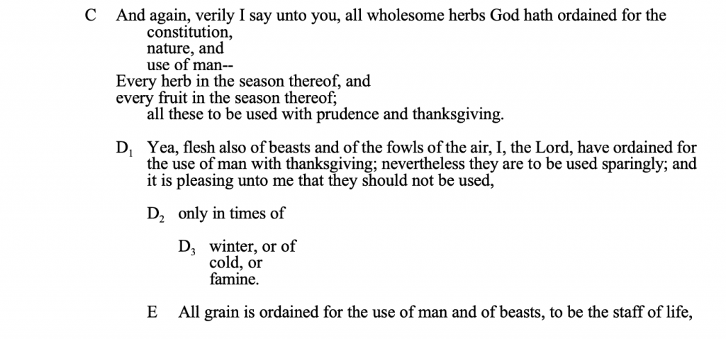 Thus, the first B2 begins with “Behold, verily, thus saith the Lord…” and ends with “…hot drinks are