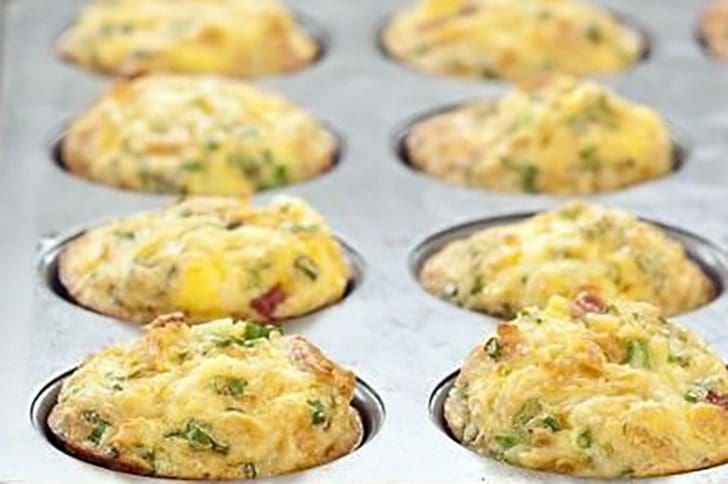 OR – Slowly pour egg mixture into prepared muffin tin. Bake in a 350 degree oven until tops are set and lightly golden, (8 to 10 minutes) rotating tin halfway through baking. Let muffins cool slightly, then run small knife around each muffin to loosen and remove from tin. Serve.