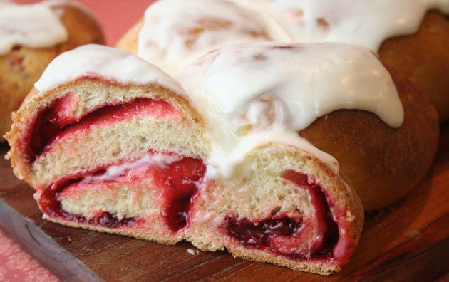 For this project, we made a cherry bread with a cream cheese frosting. We used a Buttermilk White Bread Mix but you can use any mix or recipe you like. We used a cherry pastry filling but a pie filling or Chubby Cherry would have worked well.