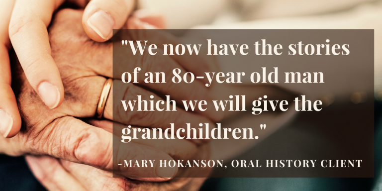After the interviews, audio can be transcribed, written into stories or made into videos. However, none of these additional steps are necessary. In many cases, simply recording one or more life story interviews is enough to feel good about it being done. Sure, you may have wonderful visions of a book. The reality, however, is that this may not be needed and the weight of this task might keep you from ever getting it done. Oral history breaks through all of this.