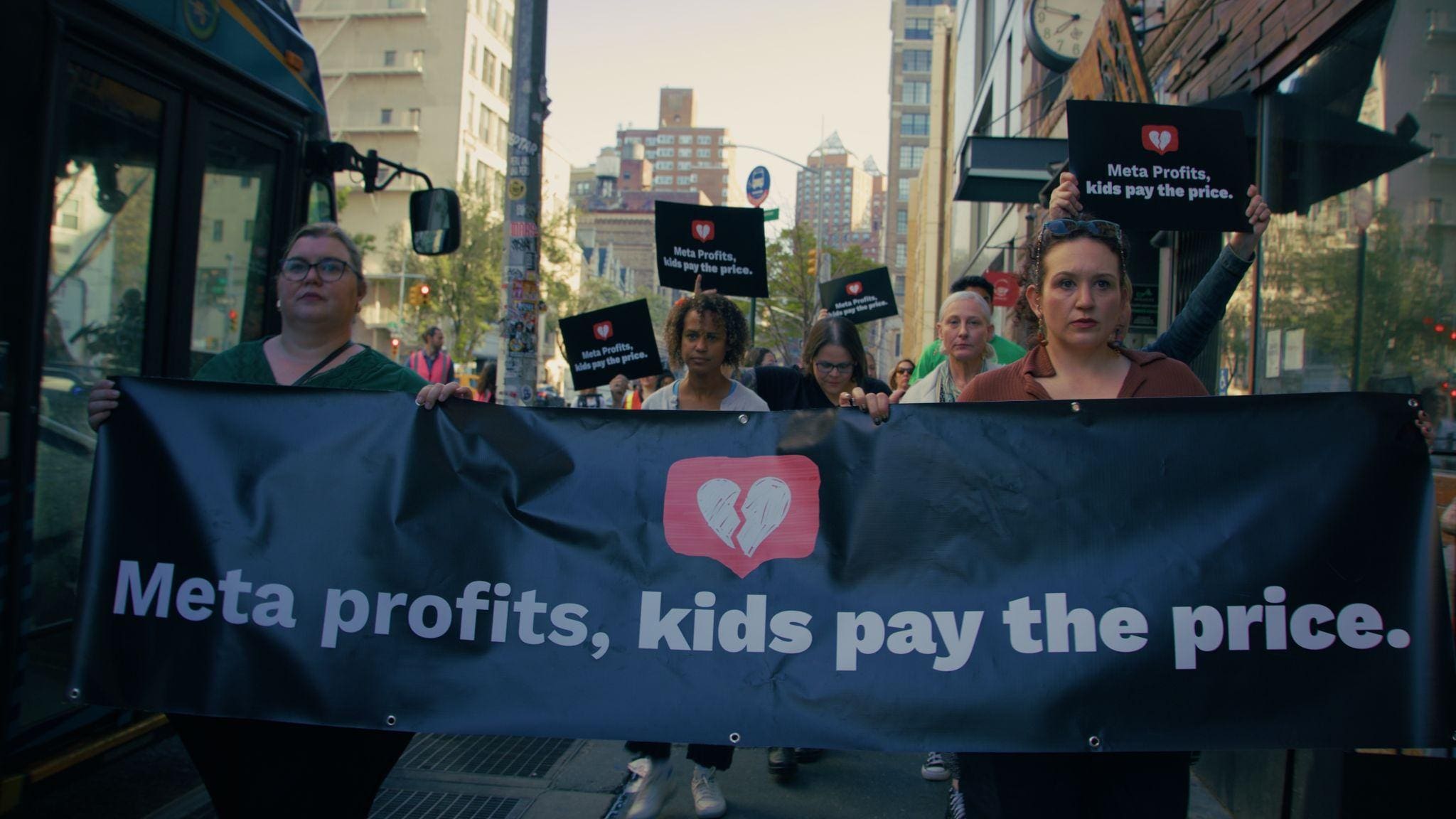 Last week, 45 bereaved families marched on Meta’s office in downtown Manhattan to hand deliver an open letter addressed to Mark Zuckerberg signed by more than 10,000 parents, advocates, and concerned individuals as well as 18 child safety organizations demanding that Meta take urgent and comprehensive action to protect children. The event was organized with support from Heat Initiative, ParentsTogether Action, and Design It For Us.