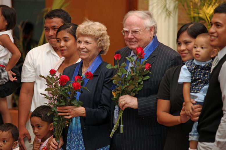 Sixty-two alumni have been married in the Manila temple after meeting at an academy class, all of them better able to live beyond poverty because they have been taught. The night of the gala each couple who was present brought a red rose to the Gibsons as a thank you. It made them cry. -