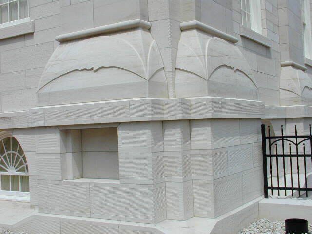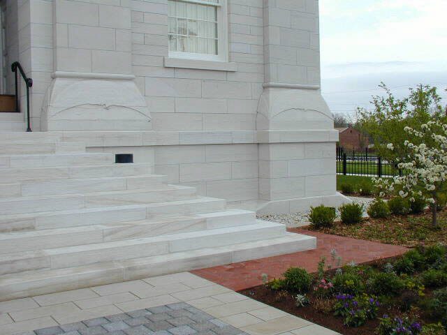 Here you can not only see the moonstone at the southwest corner of the temple, but you can begin to see the intricate cuts on each of the stones for the façade of the temple. When we were talking to the builders of the temple I asked if anything significant had been found in the deep excavation of the temple lot. I was told that there was not much found except they did find one large, lone block of limestone that had been a part of the temple and perfectly preserved the special ‘basket-weave’ pattern for carving the outside temple stones in the original Nauvoo Temple. So, the same pattern was used for all of the stones on the re-built Nauvoo Temple. Yes, that was one significant find. I will show you more detail in a future photo essay. -