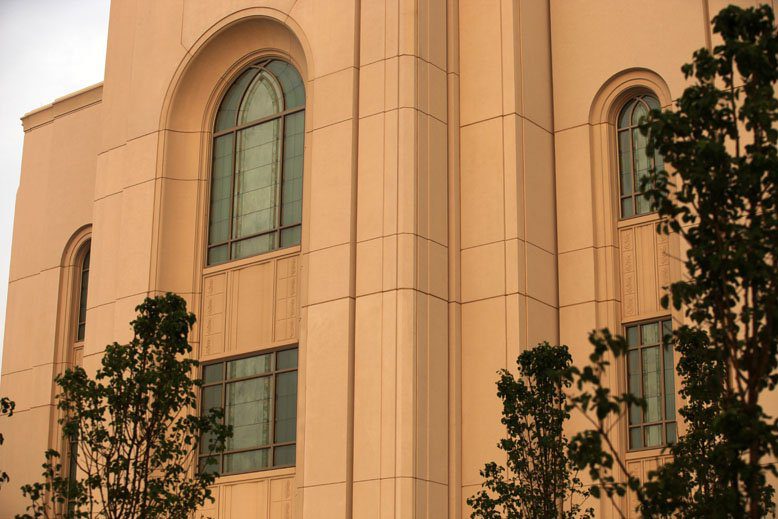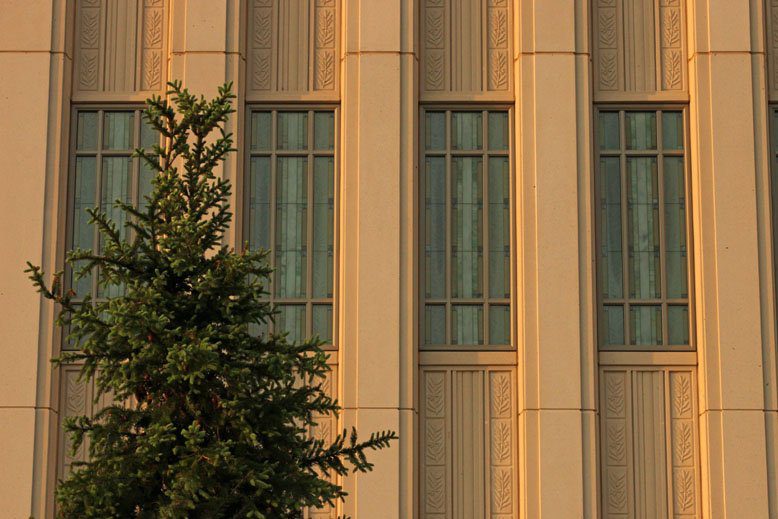 Another view of the olive branch motif on the temple exterior. “The Lord lift up his countenance upon thee, and give thee peace” (Numbers 6:26). -