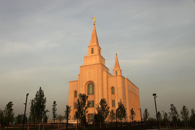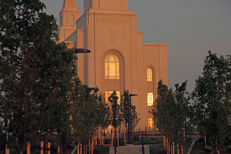 A hint of light begins to touch the sky. Some asked why a temple built in western Missouri wasn’t in Independence where Joseph prophesied a temple would be. People in the area say you can’t miss seeing this temple because it is by the freeway. This location was chosen because of its ease of access for Latter-day Saints who live in the area. -