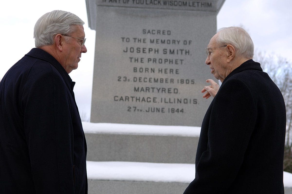 President Hinckley spoke at the gravessides of Joseph and Emma and Hyrum in Nauvoo.