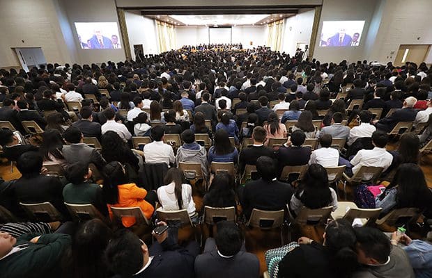 Speaking at the Concepción Chile Temple youth devotional, President Nelson addressed the 28,000 youth in the temple district—1,500 of which were gathered in the Talcahuano Chile South Stake Center, where the devotional originated and from where it was broadcast across the nation.