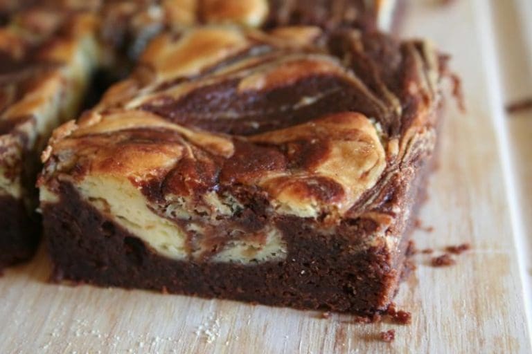 You can add a cream cheese filling to any brownie mix. There are two ways to do this: either swirling the cream cheese filling through the brownie batter or putting a cream cheese layer over the brownie batter to make a layered dessert. We’ll describe both ways.