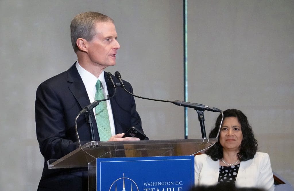 For those who couldn’t participate in the tours on May 11, the Church released on the internet a 12-minute virtual tour of the D.C. Temple conducted by Elders Gary E. Stevenson and Dale G. Renlund. Then, on May 26, at the invitation of the National Press Club, Elder Bednar returned to Washington D.C. as the speaker for the “Headliners Luncheon.” Since 1932, more heads of state and government have appeared at that forum than any other than the White House. The last time this honor was accorded an LDS leader occurred in 2000 when President Gordon B. Hinckley accepted an invitation to speak and answer media questions.