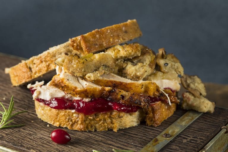 If you like chicken salad sandwiches, you’ll like this recipe for turkey salad sandwiches. The filling is given both flavor and color with the addition of dried cranberries.