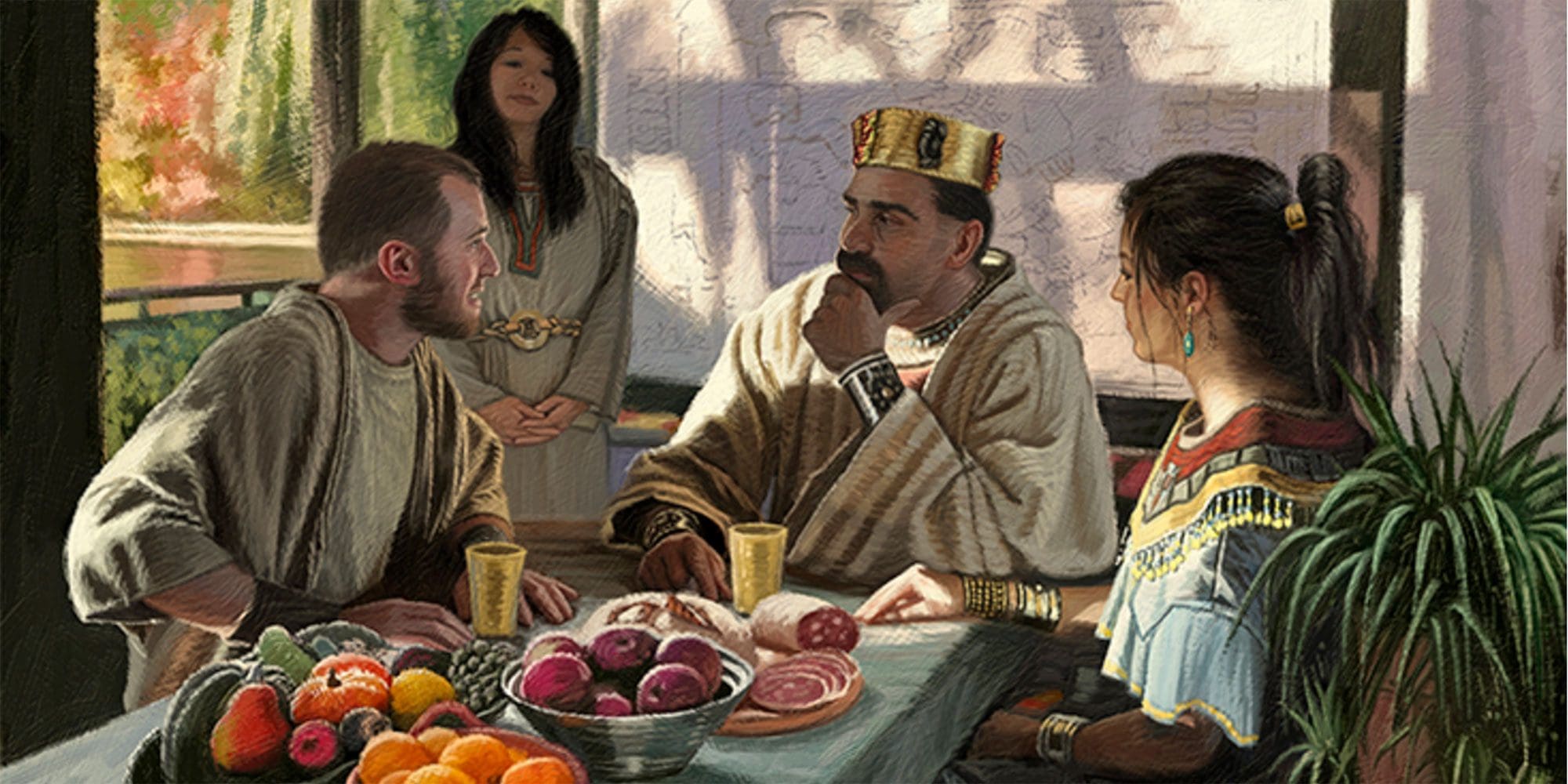 After Alma had faced rejection at the city of Ammonihah, an angel commanded him to go back (Alma 8:8–18). Upon his return, Alma was received by Amulek, who was commanded by an angel to receive him into his home (vv. 19–20). Amulek “received him into his house … and he brought forth bread and meat and set before Alma” (v. 21). After eating the meal set before him, Alma “blessed Amulek and his house, and he gave thanks unto God” (v. 22).